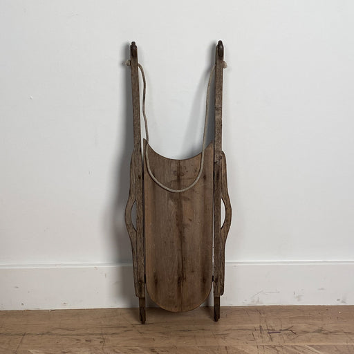 A small scale American wood sled in oak with iron runners