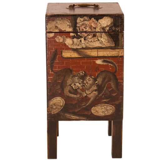 A whimsical well-proportioned four bottle cellarette made in England during the 19th century. We are uncertain when the paint was put on this piece...