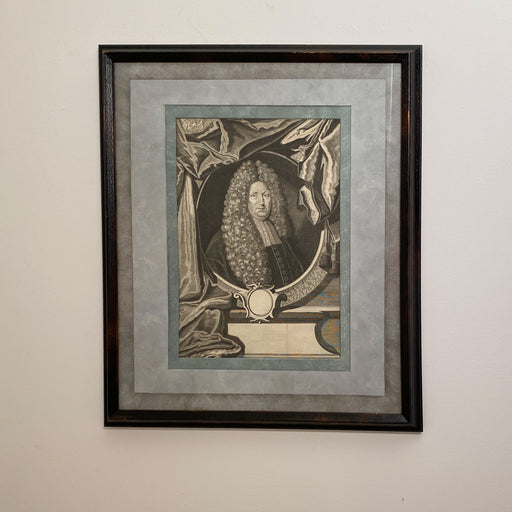 An 18th Century English large unfinished engraving of a minister, circa 1700