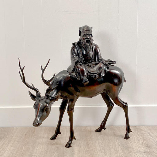 Antique & Art ExchangeOriginal price $5,500.00 - Original price $5,500.00Original price$5,500.00$5,500.00 - $5,500.00Current price $5,500.00| /A large scale Japanese bronze censer of the god of wisdom Manju riding astride a stag, Taisho Period. Was $7500