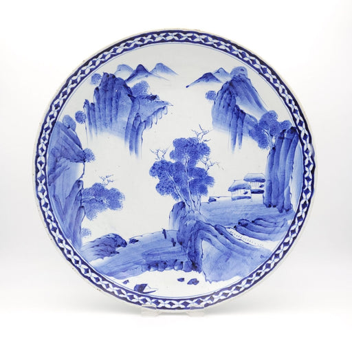 An Imari charger in blue and white depicting a landscape scene, Japan circa 1880.