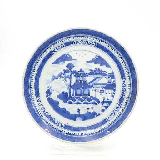 A Nanking Chinese export blue and white plate, circa 1840, with later mark on back "China Made In".