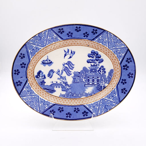 A Staffordshire blue and white platter in the "Columbia" pattern.
