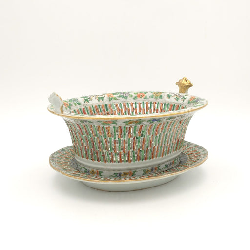 • Chinese Export Famille Rose Chestnut Basket on Stand, circa 1880