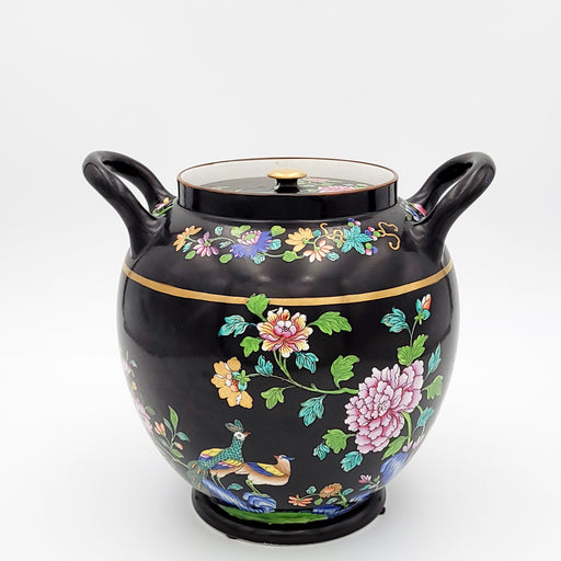 Antique & Art ExchangeOriginal price $950.00 - Original price $950.00Original price$950.00$950.00 - $950.00Current price $950.00| /Spode Potpourri jar in the Peacock pattern, England circa 1820. The jar is two handled amphora shaped with a black ground with pattern in polychrom...
