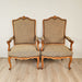 A pair of 19th-century Italian carved wooden chairs in transitional style. Seat height 19". Spot on one seat.