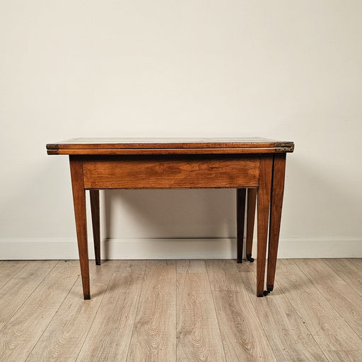 A 19th-century French fruitwood folding dining table. Measures 28.5" h x 86.5" w when open.