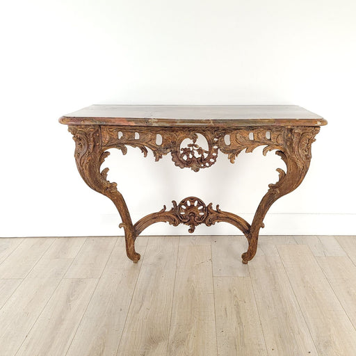 A good French oak Régence-period marble-topped console, early 18th century. Restored.