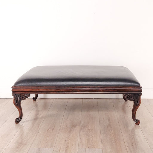 • Walnut Leather Upholstered Ottoman, France, 19th century