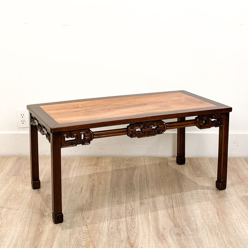 A vintage Chinese mixed wood low table, with nice carving,