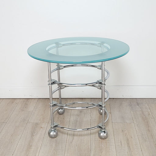 • Chrome and Glass Modernist Round Center or Side Table by Jay Spectre, circa 1980