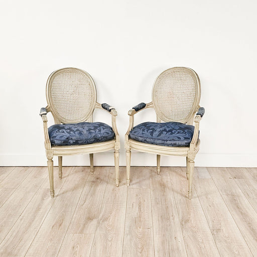 • Pair of Belle Époque Louis XVI Painted Armchairs, France circa 1900