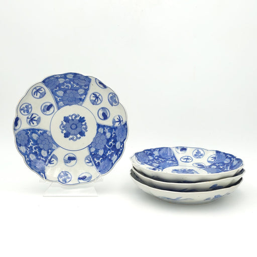 • Set of Eight Gourd-Shaped Japanese Dishes in Blue and White, Vintage