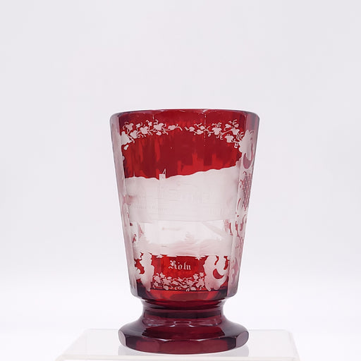 • Circa 1900 Bohemian Engraved Ruby Flashed Glass Vase