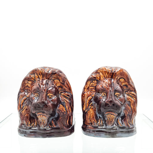 • Rockingham Treacle Brown Glazed Lion Portraits, A Pair