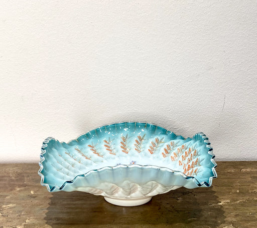 A Vintage Italian glass square glass bowl with a blue border and gold decorations