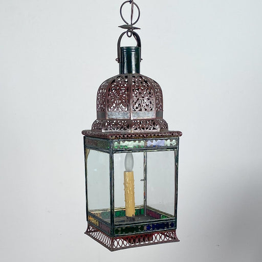 A Mid Century Ottoman Lantern with colored glass insets. Two available, priced each.