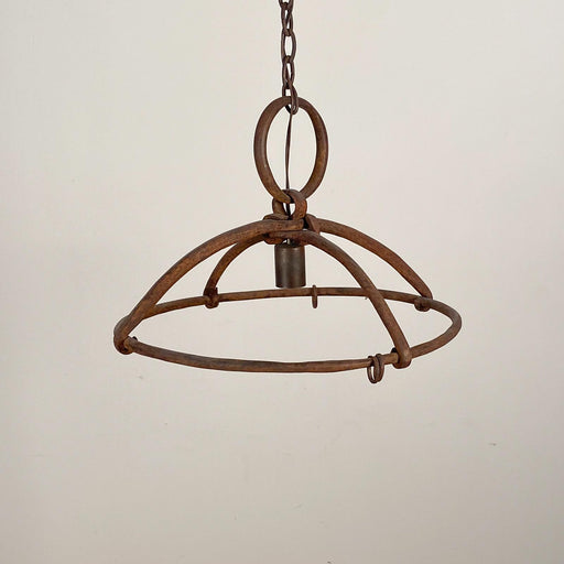 18th - 19th Century Spanish wrought iron pot rack later mounted as a hanging lighting fixture