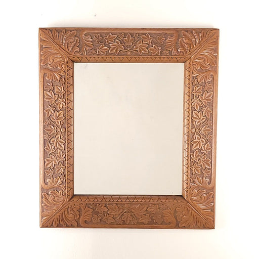 An Arts and Crafts carved oak frame with later mirror, England circa 1900.