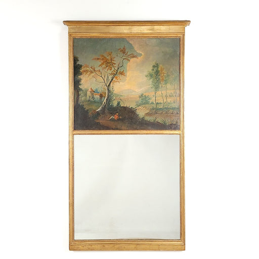 A Belle Époque giltwood mirror, France circa 1900, featuring a beautiful painted landscape.