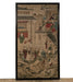 A large Chinese painted paper panel framed with glass, depicting figures in a palace, made about 1900.