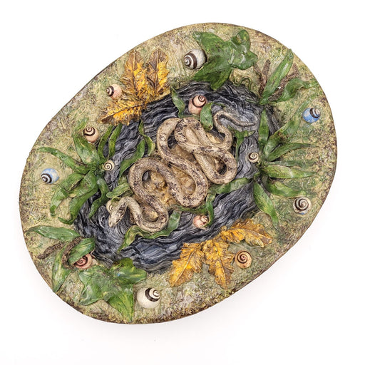 A 19th-century English majolica multi-colored glazed plate with lily pads.