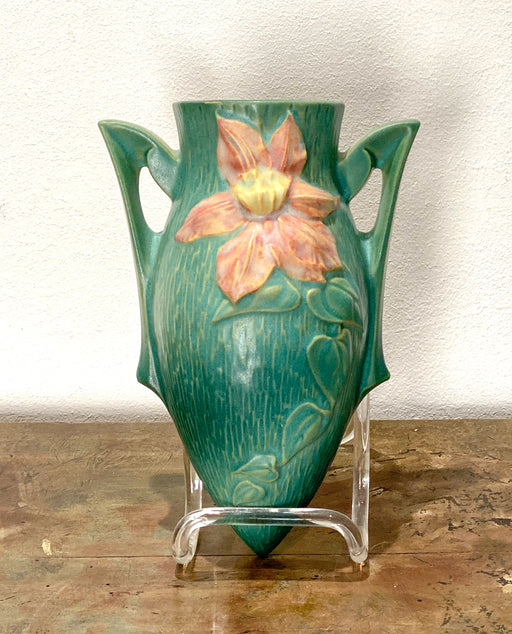 A 20th Century Roseville Pottery wall pocket in green with a flower