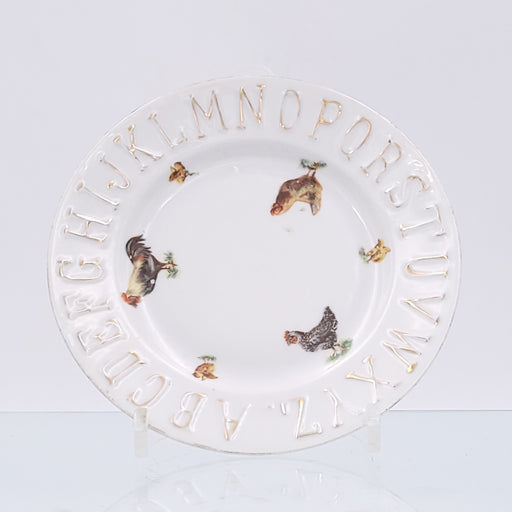 A rare Paris Porcelain child's dish with enameled animals and rubbed gilt alphabet, France circa 1870.