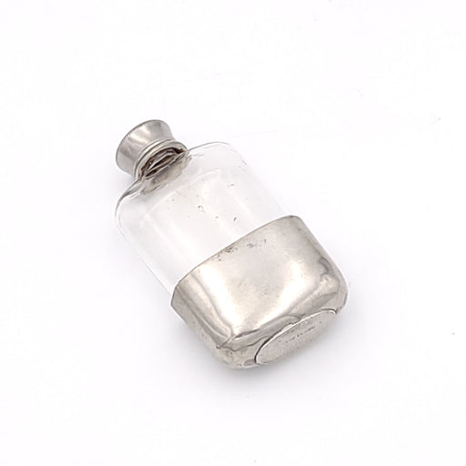 A silver-plated crystal flask, circa 1940.