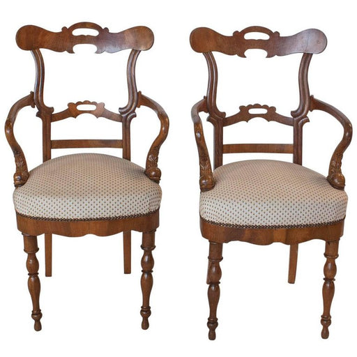 • Circa 1830 Italian Walnut Armchairs, A Pair