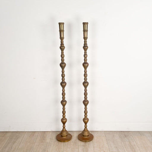 Antique & Art ExchangeOriginal price $895.00 - Original price $895.00Original price$895.00$895.00 - $895.00Current price $895.00| /A pair of very tall brass candlesticks, probably Anglo-Indian, circa 1950. The candlesticks are turned brass standing on the floor.