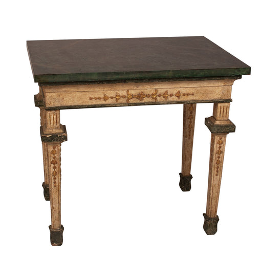 A 19th Century Italian Neoclassical painted side table with a faux marble top.