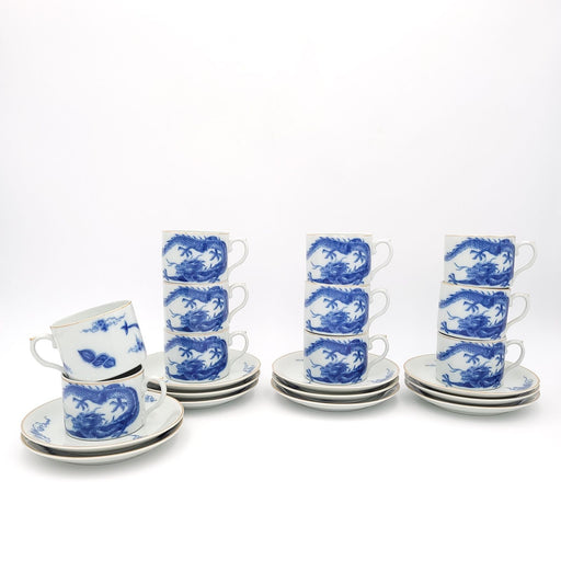 • Set of Eleven Mottahedeh Blue Dragon Coffee Cups and Saucers