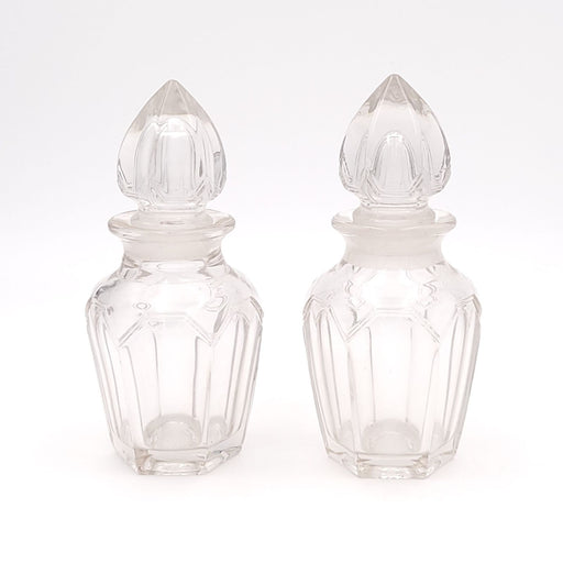 A pair of faceted bottles, France, 19th century. One has small chips.