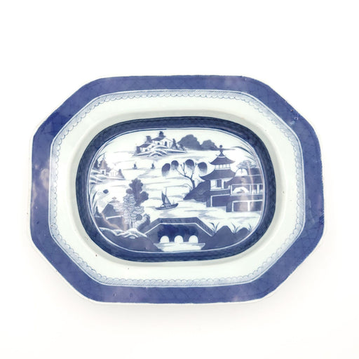 • Blue and White Chinese Porcelain Canton Platter, circa 1890