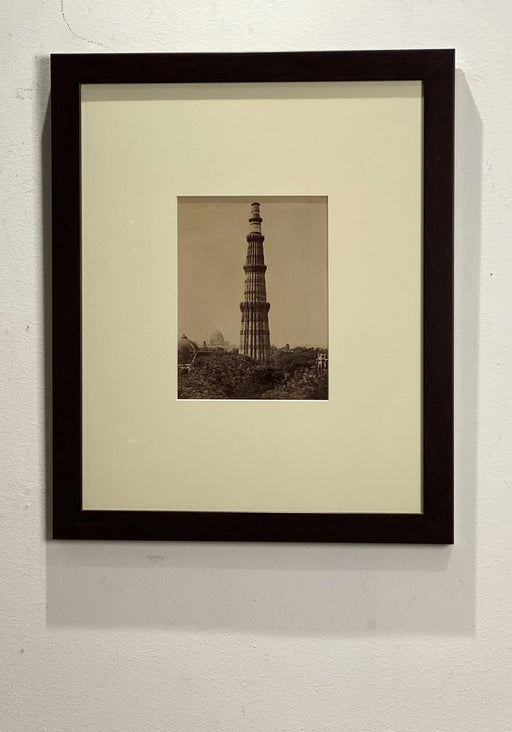A 19th Century silver albumen photograph of the Quatab Minar (also spelled Qutb Minar or Qutub Minar) in Delhi, India