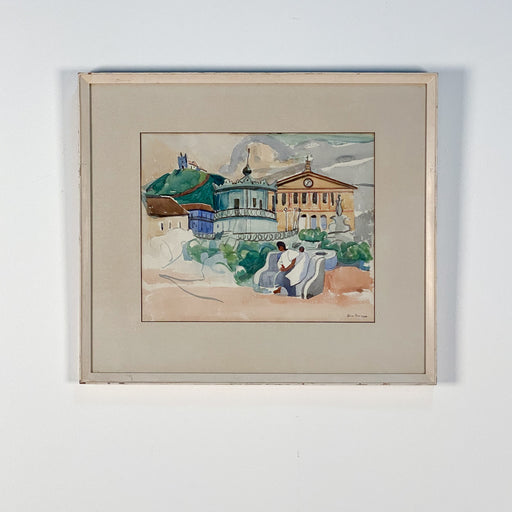 Circa 1920s Southwestern Watercolor by Gene Frances McComas, probably Santa Fe