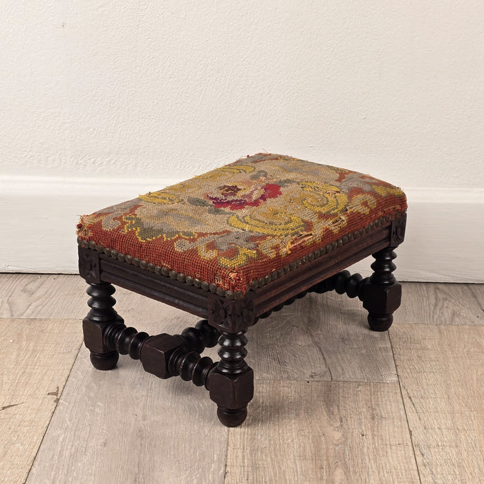 19th Century English Needlepoint Footstool