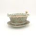 A good Chinese export famille rose chestnut basket on stand, circa 1880. Listed measurements are for the two pieces combined as shown; the basket on its own measures 5" h x 10" w x 8.75" d, and the stand measures 1.25" h x 9.75" w x 8.75" d.