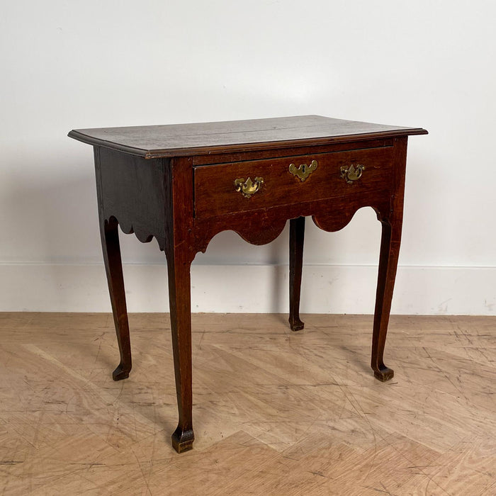 A late 18th Century oak low boy, dressing table on scrolled feet, England circa 1780.