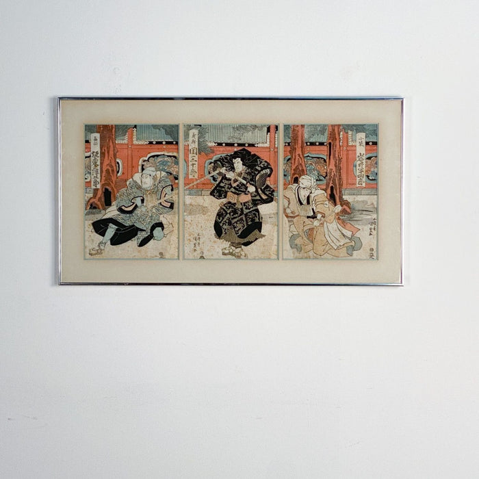 Genji Story triptych, attributed to Gotosei Enjaku, circa 1850. A rarely seen artist who had a good but brief career. He generally illustrated plays, and was highly regarded.