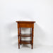 A late 18th-century French Louis XVI–period walnut and marble wine table, circa 1780, with two copper bottle holders inset into the top. The square red-veined marble top fitted with two copper wells; above deep apron containing one drawer; raised on four legs with ring, cylinder and block turning; joined by two shelves; the whole supported by ball feet. Condition: Wear to finish. Some small repairs.