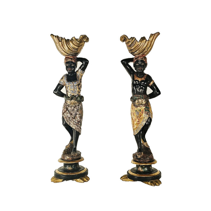 A pair of Venetian blackamoor figurines with shells on their heads, Italy circa 1920.