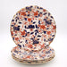 A set of four richly decorated plates in rust, cobalt blue, and gold, made in Staffordshire region of England circa 1880.