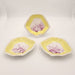 A set of three lozenge shaped dishes decorated in puce and yellow, Continental, circa 1780. Repaired chips.