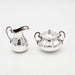 A sterling cream and sugar, marked Sanborns, Mexico circa 1930. The sugar bowl measures 2.75" h x 3.75" w x 3" d, and the cream pitcher measures 3.75" h x 3" w x 2" d.