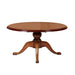 There are 2 sets of leaves, the first set makes the table 75.25" diameter and the second set makes the table 90.5" diameter. Each set of leaves are stored in a custom box. 2 tables available, priced and sold separately.